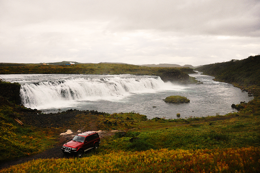When we arrived at Faxi, there were only a couple of unauthorized fishermen. I say unauthorized because despite signs clearly stating fishing was forbidden they were indeed fishing. Sadly these things happen everywhere in the world, also in Iceland. I stayed away from the waterfall because waterfalls in general freak me out, while Harry and Jason, accompanied by Kátur, went close to water. At that point it wasn’t raining that hard, but my camera was very wet because of the waterfall’s sprays. I couldn’t take excellent photos, but I tried anyway.