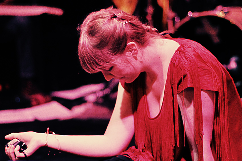 Childlike and eerie, Kristín’s effected voice, so rare and precious, melted against the broken surface of loose sounds; trickles of echoes crept into cracks in the apparent incoherence of the fantastically conceived sonic texture. Kosminen’s percussion emerged with a graceful nerve, confident, to the point, but never intrusive. The contrabasses susurrated their unheard-of song, while winds and guitars emitted their solitary laments. It felt like being at the bottom of the darkest ocean, in an upside down recess with a flickering light only sparsely illuminating faces and stories in an overall disintegrated narrative. A feeling of surreal calmness filled the heart, too bizarre though to truly call it safety.